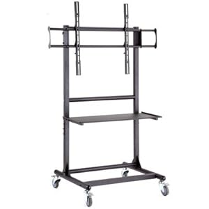 Product Description : Cotytech Adjustable Ergonomic Mobile TV Cart For 56-Inch to 70-Inch is a perfect solution to all your digital display and presentation needs. The rolling TV cart is Ideal for safely and securely moving flat panel displays up to 70-Inch, with universal or VESA mounting pattern up to 900 x 650. The moveable TV stand has 76.97-Inch (195.5cm) maximum height and it's fully mobile with 4 heavy duty casters. This flat panel TV stand is made of steel, featuring weight capacity of 140 lbs. (63.6 kgs), 5-Degree to -10-Degree screen tilt. Equipment shelves are offered as options for anything from laptop, DVD player, to projector etc. It's ergonomic, portable, space saving attributes and contemporary look make the media cart an attractive choice in all types of conferences, exhibitions, businesses, office, mall kiosks, retail stores, factories, band, schools, hospital, internet cage and even for home entertainment.