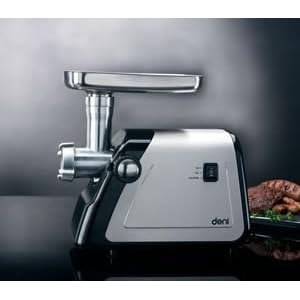 Product Description : - Deni 800 watt meat grinder- Grinds 3 pounds of meat per minute- On/off/reverse function- Reverse motor frees clogged food without disassembling the grinder- Brushed stainless steel housing- Easy to assemble and clean- Includes: 1 cutting blade, 3 durable diecast grinding plates (2.9mm, 4.9mm, 22.7mm), 1 sausage stuffer, 1 food pusher and a large hopper- 3 Plates made from heavy-duty metal that withstands high temperatures and has increased resistance to corrosion: Fine (2.9mm) - used for breakfast sausage, spreads, pates, baby food, hamburgers; Medium (4.9mm) - used for Polish and Italian sausage, ground meat in soup or relishes; and Coarse (22.7mm) - used for larger sausages, ground meat in chili or with vegetablesDENI3500