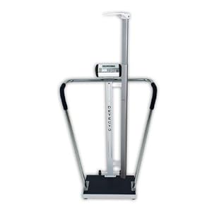 Product Description : 6854DHR Capacity: 600 lb x 0.2 lb Platform 18"x14"x1.75" Features: -Digital scale.-Available in 600 lbs x 0.2 lbs / 270 kg x 0.1 kg platform 18' x 14' x 1.75' and 800 lbs x 0.2 lbs / 360 kg x 0.1 kg platform 24' x 24' x 1.75' capacity.-Fast, accurate digital height LCD readouts.-Measures up to 79'.-Highly accurate digital weight display with BMI.-Extra strength wrap around tubular stainless steel handrails.-Large heavy duty rubber wheels and the scale tips back for easy transporting.-Skid proof and soft, but durable black rubber mat.-Capacity: 800 lbs x 0.2 lbs / 360 kg x 0.1 kg.-Platform size: 18' x 14' and 24' x 24'.-Digital height rod measurements: 43' - 79'.-Power source: 6 'C' size alkaline batteries (not included) or optional AC adapter. Dimensions: -Display: Liquid crystal, 0.5' high weight readouts.