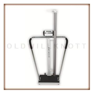 Product Description : 6854DHR Capacity: 600 lb x 0.2 lb Platform 18"x14"x1.75" Features: -Digital scale.-Available in 600 lbs x 0.2 lbs / 270 kg x 0.1 kg platform 18' x 14' x 1.75' and 800 lbs x 0.2 lbs / 360 kg x 0.1 kg platform 24' x 24' x 1.75' capacity.-Fast, accurate digital height LCD readouts.-Measures up to 79'.-Highly accurate digital weight display with BMI.-Extra strength wrap around tubular stainless steel handrails.-Large heavy duty rubber wheels and the scale tips back for easy transporting.-Skid proof and soft, but durable black rubber mat.-Capacity: 800 lbs x 0.2 lbs / 360 kg x 0.1 kg.-Platform size: 18' x 14' and 24' x 24'.-Digital height rod measurements: 43' - 79'.-Power source: 6 'C' size alkaline batteries (not included) or optional AC adapter. Dimensions: -Display: Liquid crystal, 0.5' high weight readouts.